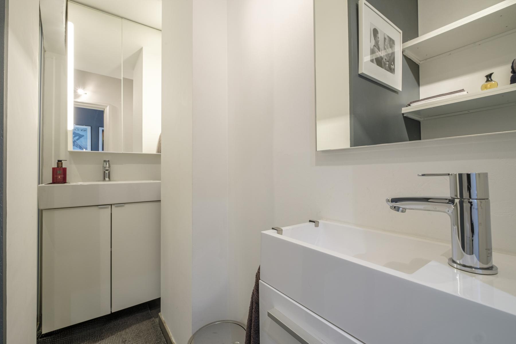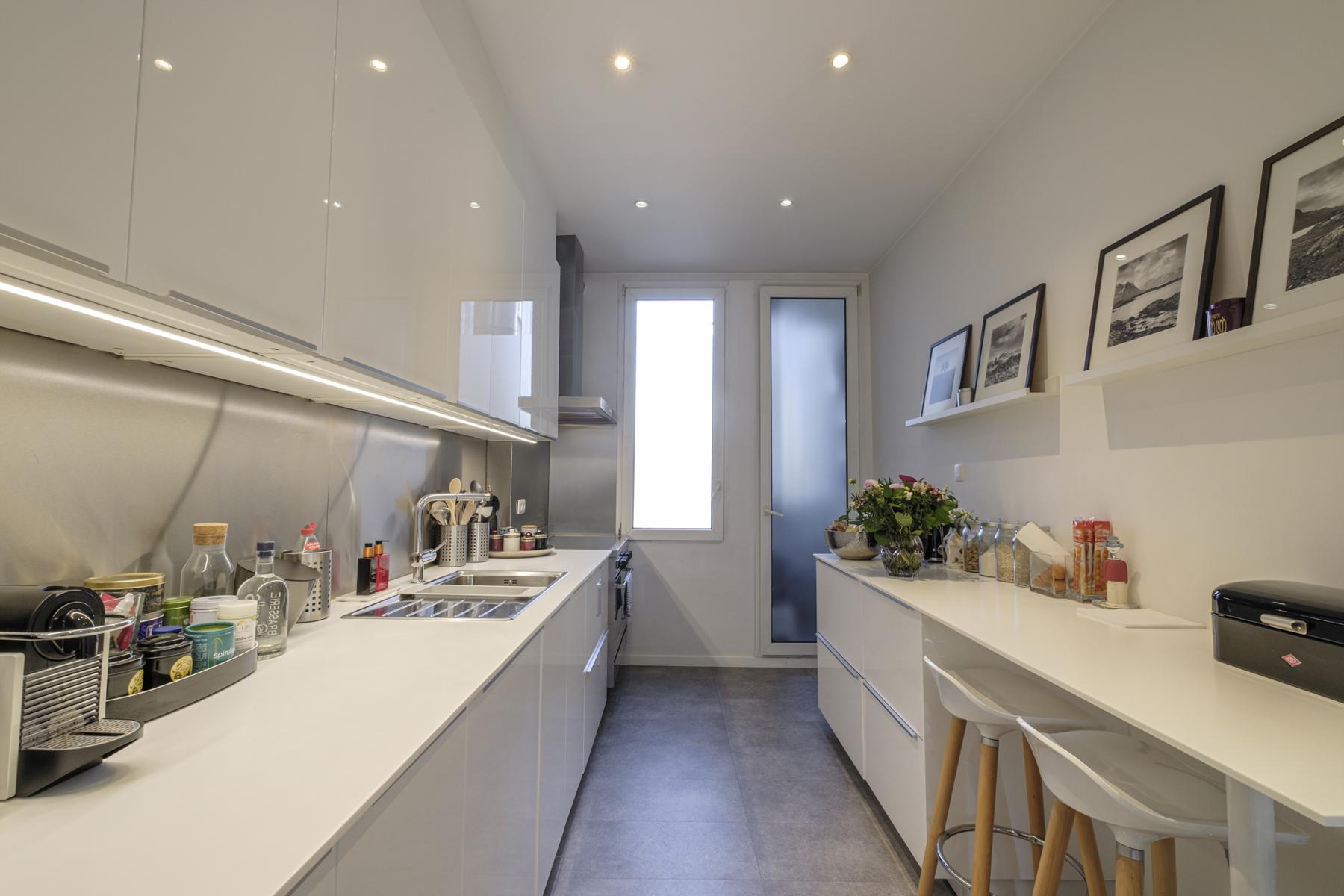 Une chambre de bonne au rez-de-chaussée fait également partie de la vente ainsi qu’une cave et un grand garage box fermé donnant directement sur la Rue de Florence. (Optionnel + 50.000€)