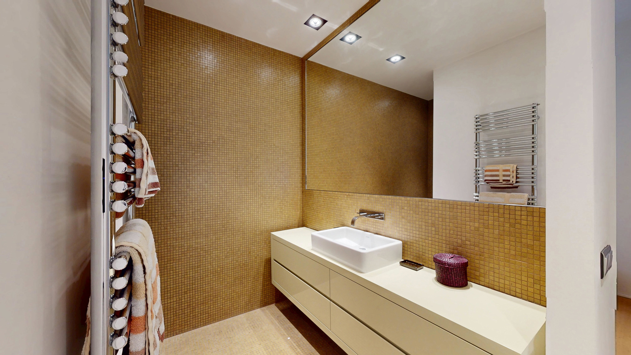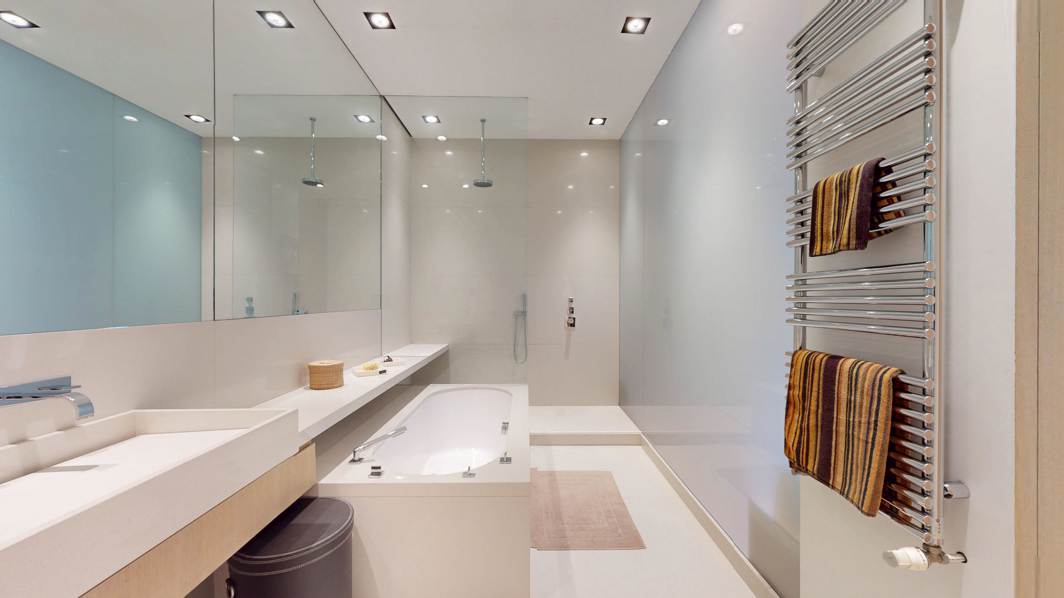 Au premier étage (avec ascenseur). Finitions haut de gamme et son aménagement raffiné, pensé par un architecte d’intérieur. L’espace de vie se compose d’un vaste séjour lumineux avec cassette au gaz, d’une salle à manger et d’une cuisine équipée. Une buanderie. Côté nuit, deux chambres spacieuses chacune avec dressing et salle d’eau privative. Une terrasse parfaitement orientée, accessible depuis le séjour.