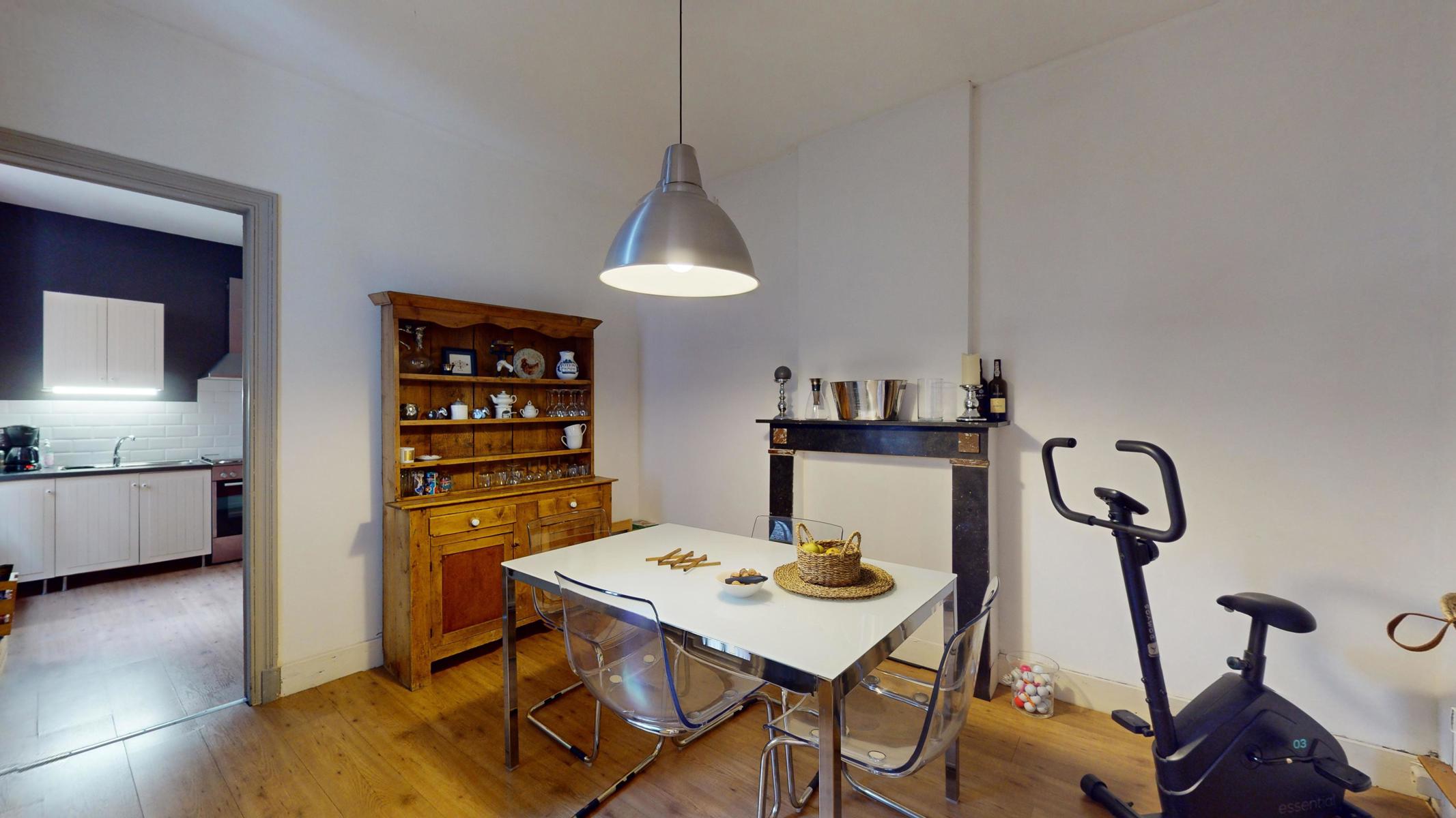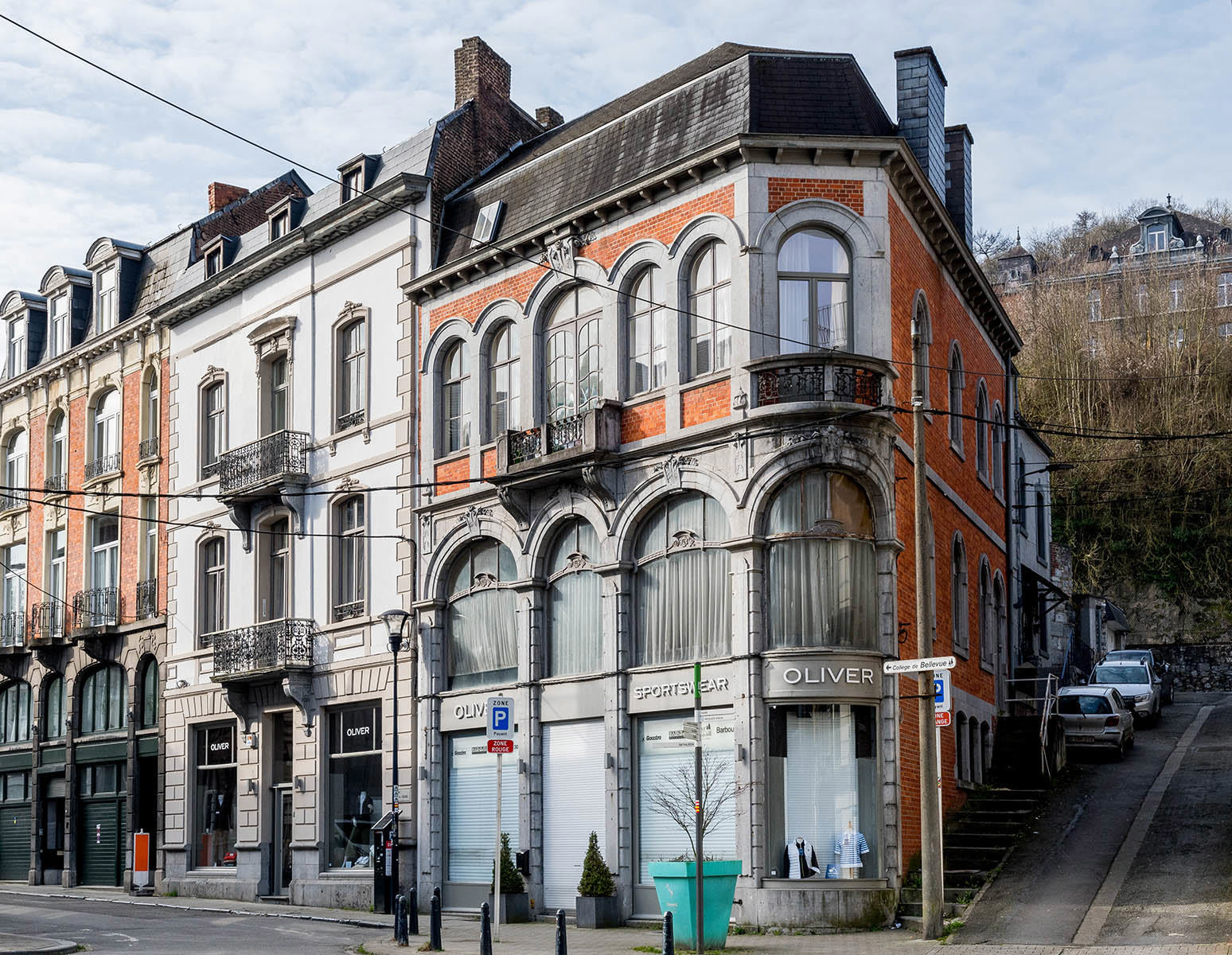 DINANT – Situé en plein centre-ville, à proximité immédiate de la gare et du pont Charles de Gaulle, cet ensemble immobilier bénéficie d’un emplacement privilégié face à la collégiale et à la citadelle. Il se compose de deux immeubles de rapport totalisant cinq unités. Le bâtiment principal comprend, au rez-de-chaussée, une vaste surface commerciale de ± 190 m² avec réserve. Aux étages supérieurs, un logement de fonction s’étend sur trois niveaux et offre deux salons, une cuisine, une salle à manger, trois chambres, une salle de bain ainsi qu’un grenier aménageable. Le second bâtiment, accessible par une entrée indépendante située dans une rue latérale, se compose de trois logements. L’appartement du premier étage, d’une superficie de ± 80 m², est à rénover entièrement et comprend une pièce de vie lumineuse, une cuisine, une salle de bain et deux chambres. Au deuxième étage, un appartement de ± 88 m², actuellement loué, dispose de trois chambres, salon, cuisine, sdb. Enfin, au dernier étage, des combles aménageables sur une surface de 92 m² offrent un beau potentiel d’agrandissement. Ce vaste ensemble de caractère se prête à de nombreux projets immobiliers, qu’il s’agisse d’un développement résidentiel, d’un commerce ou d’un établissement horeca. Une opportunité rare au cœur de Dinant ! Technique: PEB D-E-G, chaudière ind. gaz, Electricité non conforme.