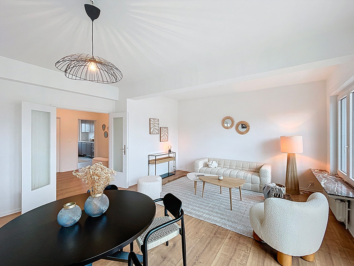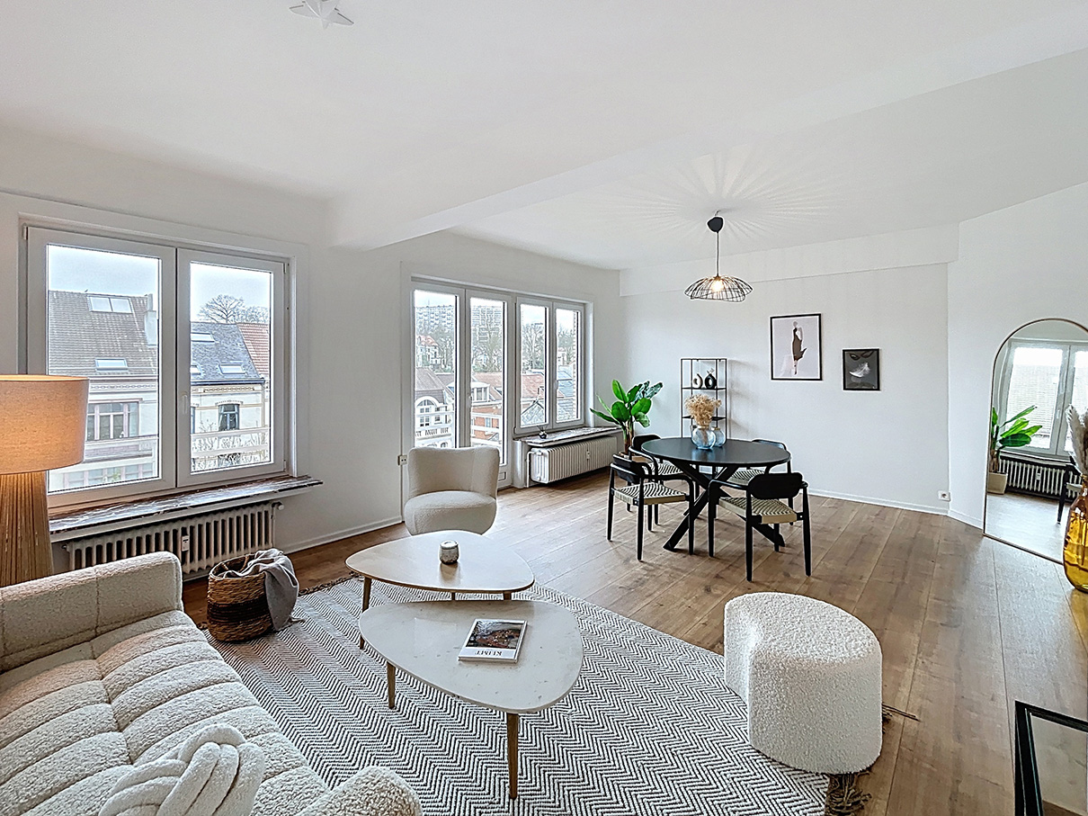 Ce charmant appartement situé à Uccle, entièrement rénové par ses propriétaires, n’a malheureusement pas séduit les acheteurs potentiels, qui peinaient à se projeter dans un espace vide. Rapidement, les demandes se sont faites rares. Pour y remédier, nous avons proposé une mise en valeur par le Home Staging.